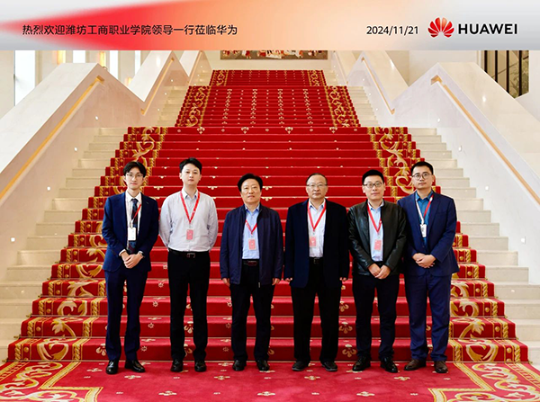 11月20日-21日,潍坊工商职业学院校长张绍秋、副校长唐德良及合作办学处处长侯国强一行莅临华为、威九国际技术总部,就产教融合、校企合作等项目进行考察研讨。威九国际技术总裁刘国锋、执行副总裁刘铭皓、北部大区总经理杜红奎、山东省区总监王言等予以热情接待。
