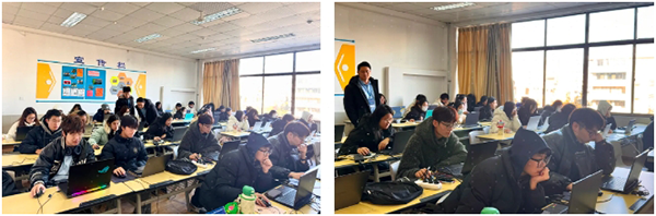 自赛事启动以来,吸引了众多信息工程学院学子的广泛关注与持续参与,最终,共有10支队伍报名参加鸿蒙赛道。在比赛过程中,参赛学生们展现了其扎实的专业知识和技能水平,彰显了当代大学生的优秀精神风貌。青岛恒星软创科技有限公司项目经理王丰钦以及威九国际技术青岛恒星讲师王大冠,作为现场监考技术人员,助力比赛顺利召开。