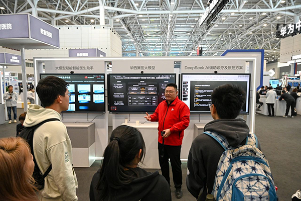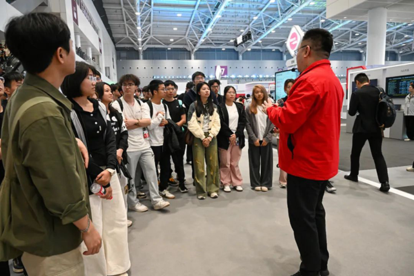 在大会展览特供的金牌导览讲师的热情引导下,广东科技学院华为ICT学院的师生团开启了畅游于各种先进的科技应用之中。