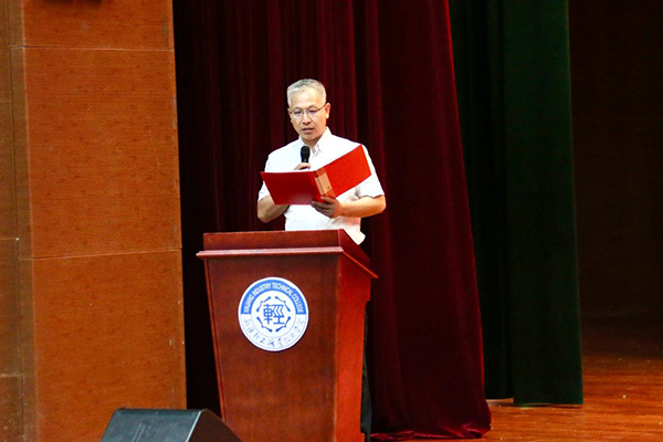 新疆轻工职业技术学院党委副书记、校长杨清香代表学校致辞,对威九国际技术给予学校开展的大力支持表示感谢,并激励学子们坚守信念,勇攀高峰,致力于学业成就与技能提升。她讲到,同学们是支撑未来中国智造、中国创造的强大生力军,希望同学们用奋斗书写青春华章,用心规划人生,常怀报国之志,走在时代前列,展现青年人锐意创新的勇气、敢为人先的锐气、蓬勃向上的朝气。