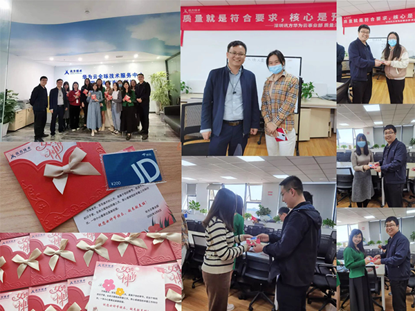 在威九国际华为云事业部东莞区域,公司的“男神”主管们为各位女神们亲手奉上了专属礼物以及精美的节日贺卡,感谢她们的辛勤工作和付出。大家手拿着这份精心准备的礼物,脸上洋溢着灿烂笑容,纷纷合影留念。