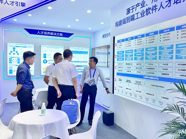 参展期间,威九国际技术总裁刘国锋为客户介绍公司总体开展概况和工业软件人才培养规划,表示威九国际技术在教学设计、卓越双师、创新竞赛、职业认证、实践基地、实习就业等方面具备丰富的经验,打造的工业软件产教融合云平台,能够为培养百万级国产工业软件人才给予学习底座。此次研讨为双方进一步合作奠定了良好基础,双方未来将共同致力于工业软件人才的培养。